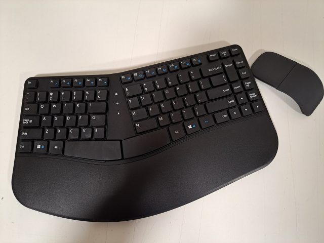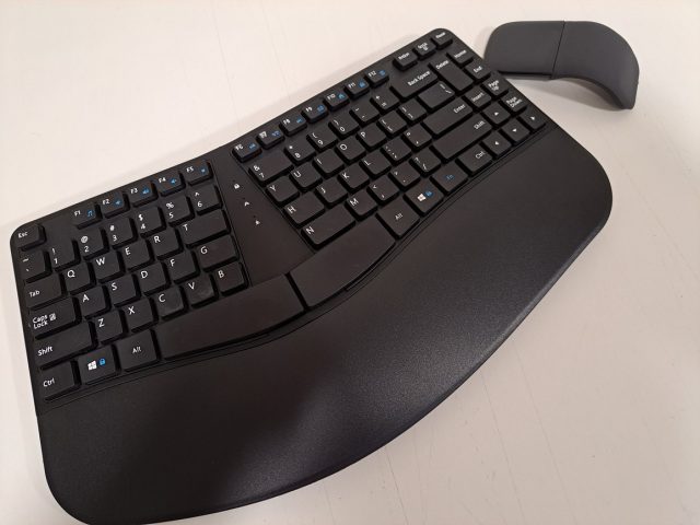 MORE INFORMATION:   The natural relaxed placement of the hands on the keyboard and the wide wrist rest are ideal for those who want to type in comfort with a neutral wrist position.Sculptured and contoured design, shaped to fit the natural position of your hands and finger tips. The split key keyboard “A” shaped layout, offers a natural arc typing position for wrists to minimise the effect of OOS, RSI and Carpel Tunnel Syndrome. Integrated wrist pad is shaped to follow the ergonomic design of the keyboard and to support wrists comfortably. Reverse tilt feet fitted at the front of the keyboard, means the keyboard angle can be set to a subtle reverse tilt so the wrists are in a natural position. Low profile keys are tactile and have a high life cycle membrane key mechanism offering excellent durability and feel. Keycap printing is UV coated, just like on laptop keyboards to offer a very long life and prevent character wear. Clear easy read key legends with FN key to multiplex some keys, e.g. the multimedia functions. Integrated multimedia keys for Media Player, Volume control, Media control and playback, E-mail, Internet, Calculator. The Windows keys functions can also be locked via a simple shortcut, if required.